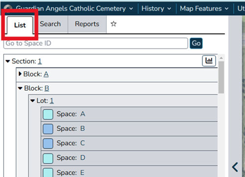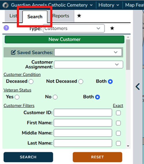 - Use the ‘Search’ tab in the left-hand flyout to get custom reports based on your data. Our search types expand across spaces, burials, markers, deeds, permissions, work orders, customers and more.
