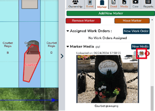 - Click on this icon once; it will turn green, indicating that the image is now visible to the public on Burial Search. Colorblind users can hover over the icon for a text description.